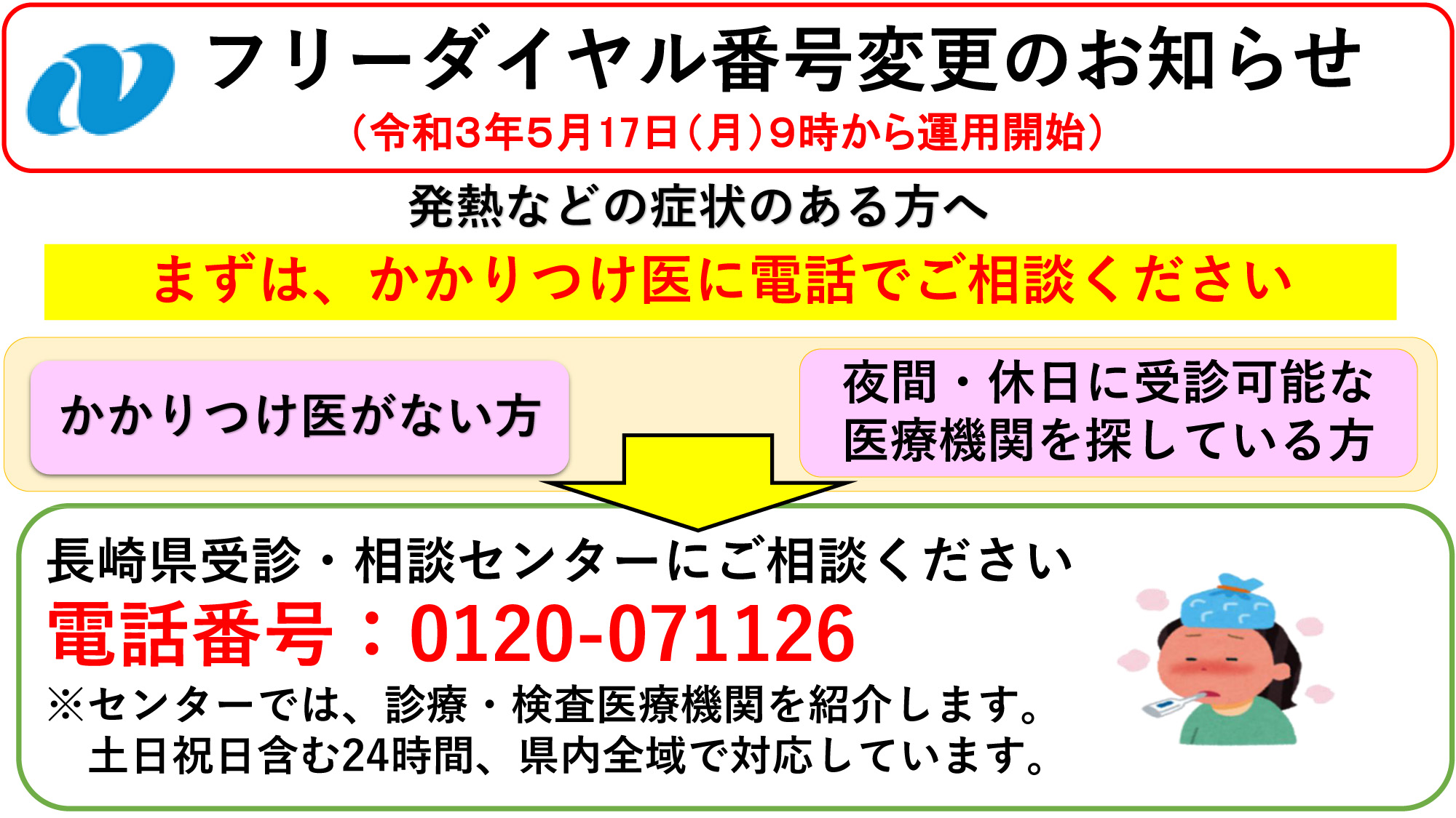 | 西彼保健所 | 095-856-5059 | 平日 | 095-857-6663 | 西海市・長与町・時津町 |