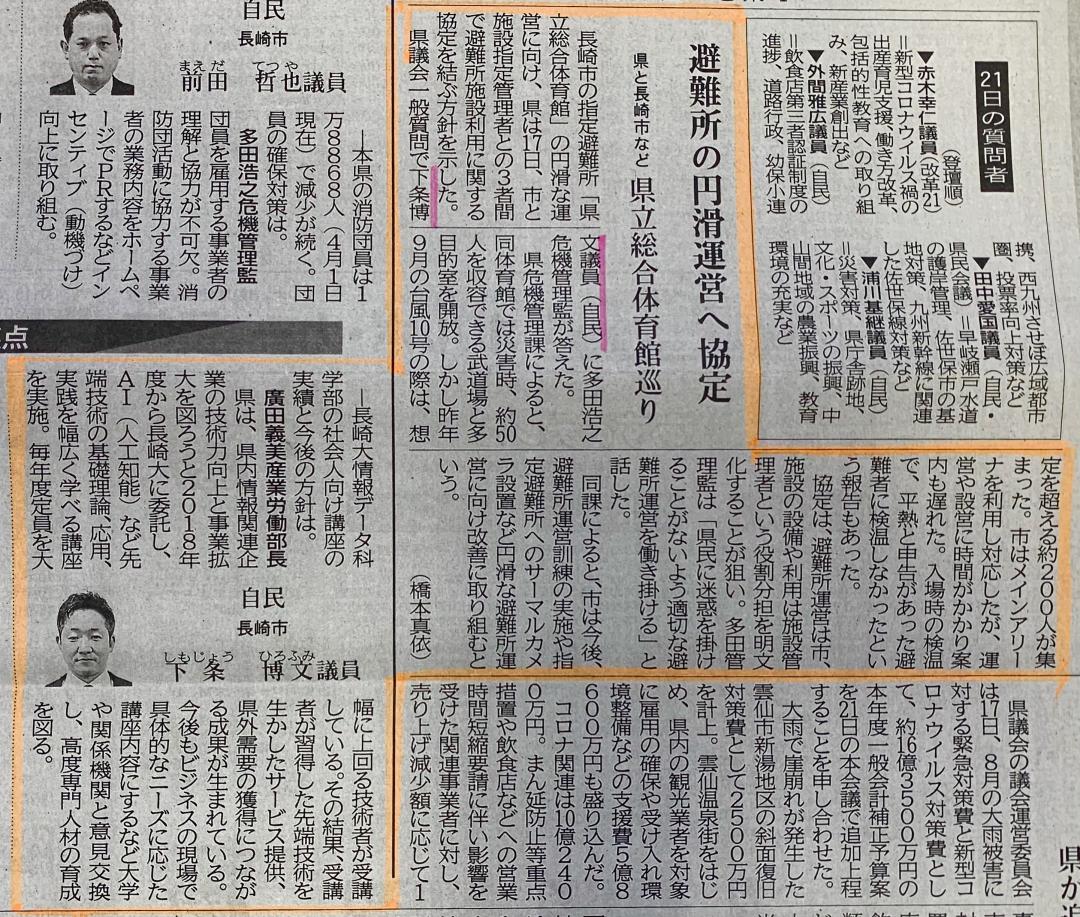 昨日の離島半島特別委員会での審査内容が長崎新聞に掲載されました。主な内容は以下の通りです。