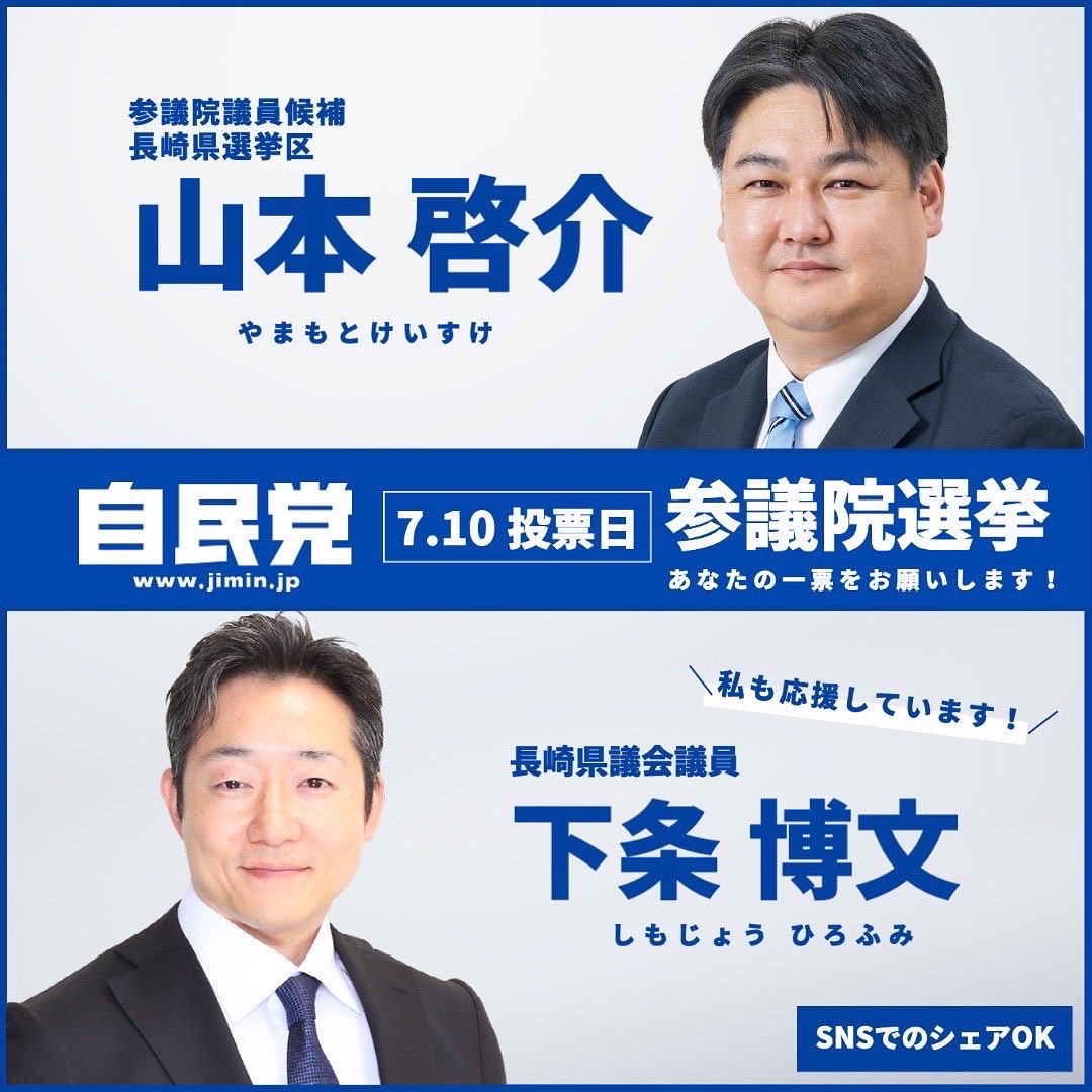 皆さまのご支援のおかげで長崎県選挙区・山本啓介氏、参院選に当選いたしました。 ありがとうございました。 また、全国比例区各自民党・公明党候補に対しましても、多大なるご支援、重ねて感謝いたします。