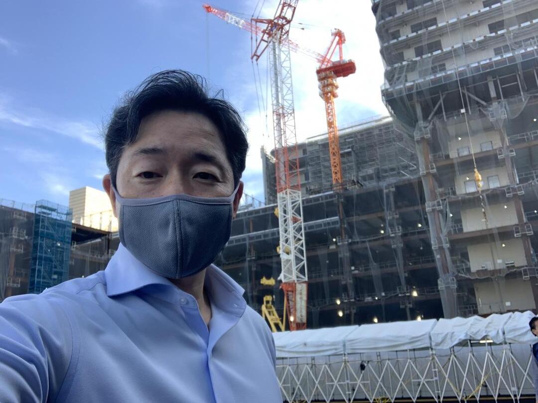 写真は長崎駅東口広場から、新たな商業施設・ホテル施設の建設現場のものです。